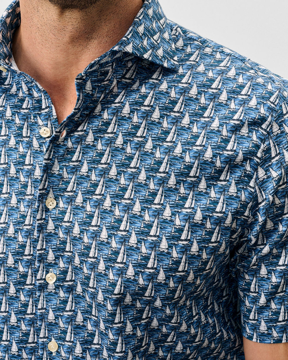 Johnnie-O Sailboat Short Sleeve Tencel Blend Button Down Shirt